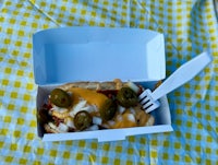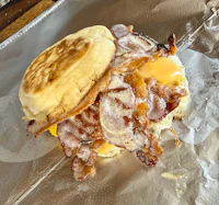 All American Foods! We cook breakfast burritos and sandwiches to order all day long.